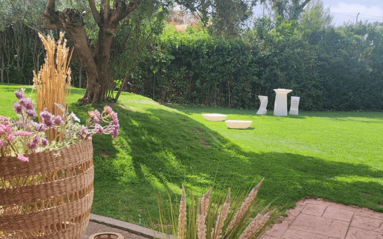 Junto al salón se encuentra el Espacio Camerino donde los invitados disfrutarán de un espacio ajardinado muy acogedor y totalmente privado.
